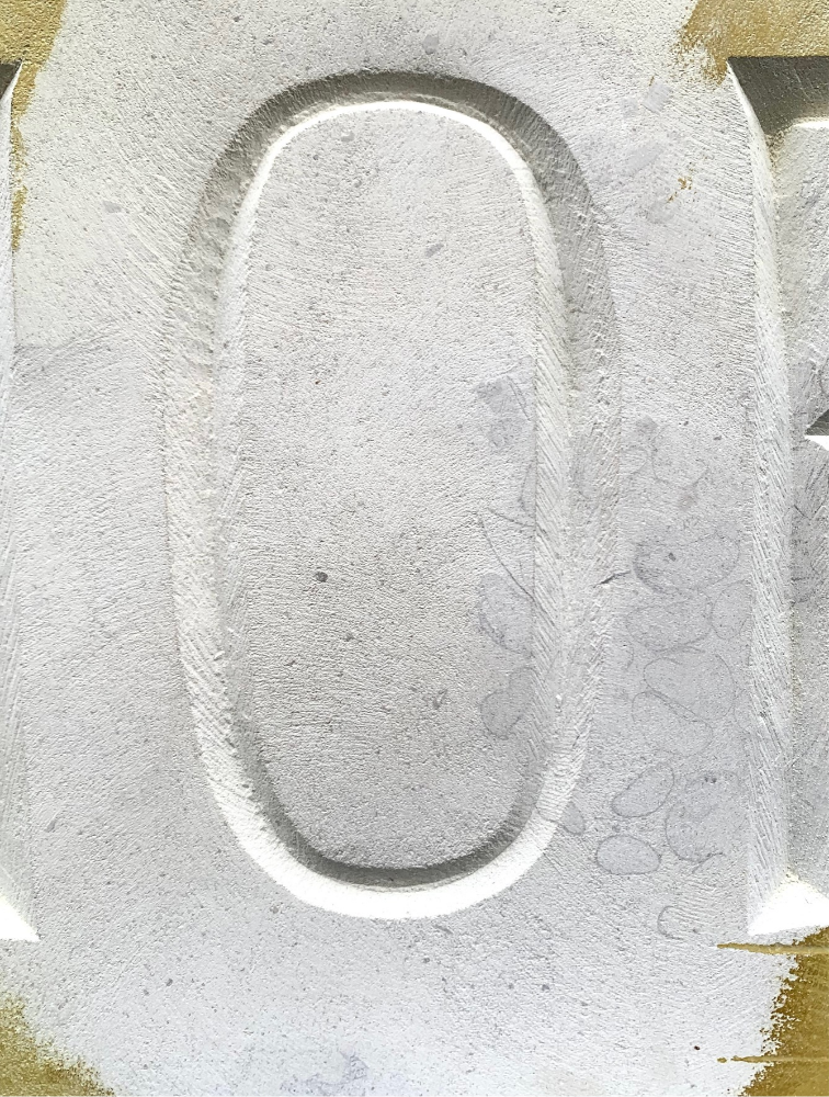 Door het schuuroppervlakte van het machientje schuurde ik, terwijl ik aan de ene letter bezig was, ook bij de andere letters delen ongewild weg.